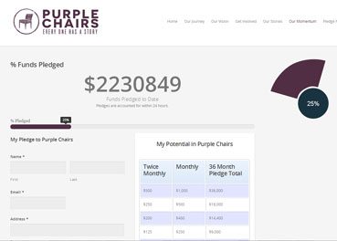 The pledge update page provides a graphical representation of the capital campaign progress.
